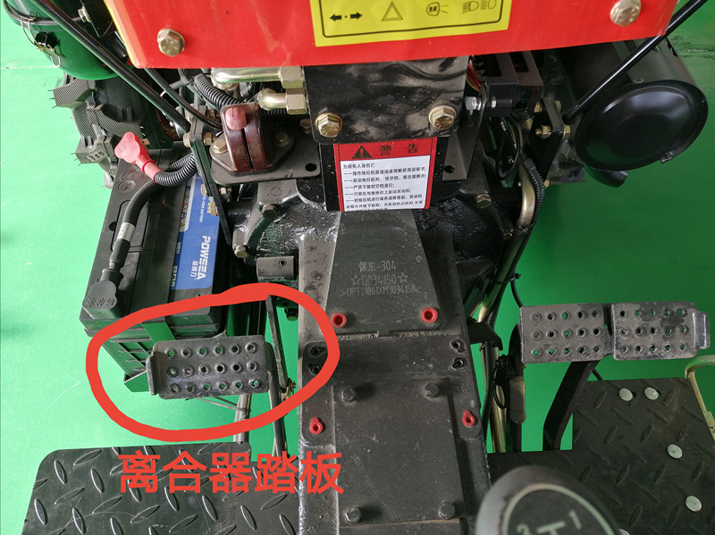 當車頭后輪單邊打滑嚴重或陷入坑中時,應踏下差速鎖控制踏板,并保持在這個位置,使差速鎖結合,使拖拉機駛出打滑地段。