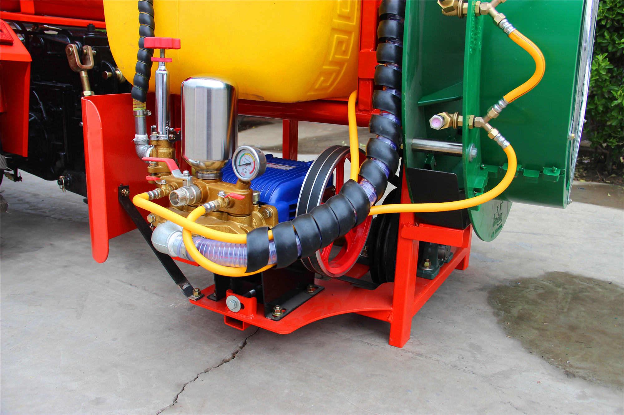 懸掛風(fēng)送式噴霧打藥機(jī)是通過(guò)三點(diǎn)式懸掛裝置與拖拉機(jī)掛接,機(jī)身短在果園里操作方便。